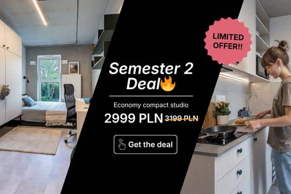 Poznaj nasze pokoje Semestr 2 rezerwacja Limited for long-term studio only